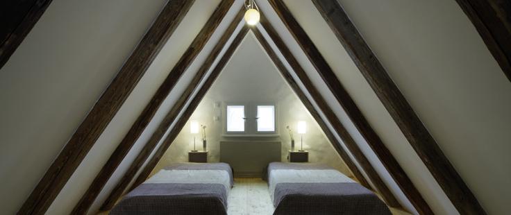 eine Leitertreppe vom Wohnraum aus gelangt man auf den Dachboden,